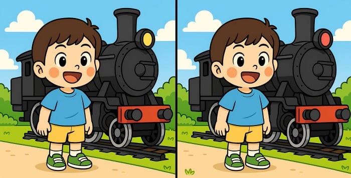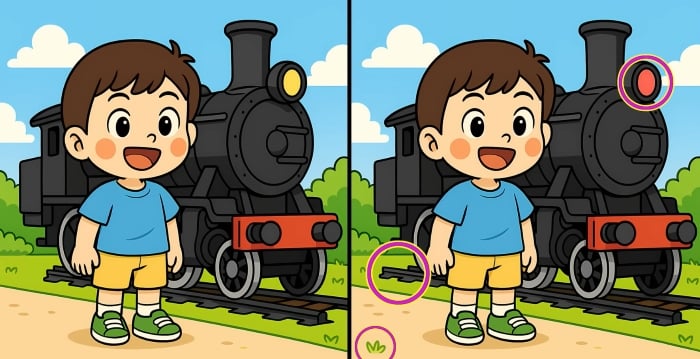 Ste pripravljeni na naslednji izziv? Natančno si oglejte dve sliki dečka, ki stoji ob parnem vlaku. Na prvi pogled sta videti enaki, vendar obstajajo tri majhne razlike. Ali mislite, da jih lahko vse najdete v 29 sekundah? Poskusite in preizkusite svojo ostrino vida!