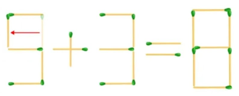 Skrivnost je v tem, da spremenite obliko številk: premaknite eno od njih tako, da se ena od “trojk” spremeni v “petko”. Potem bo primer popolnoma pravilen – 5+3=8.